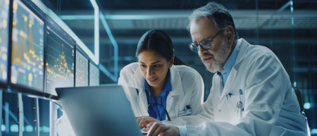 Doctor, Computer, Healthcare And Medicine. Two doctors working together in the office.