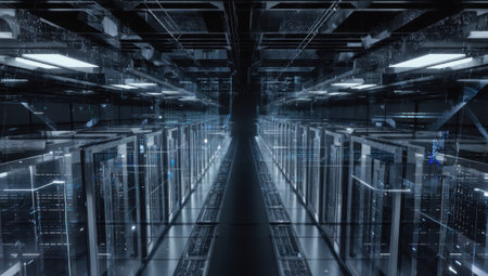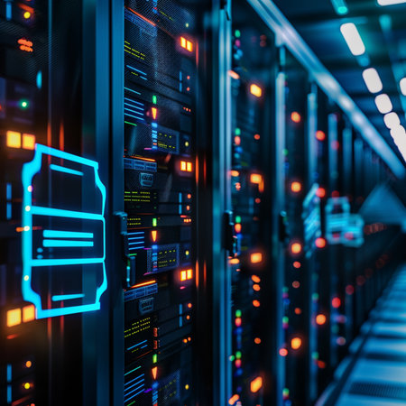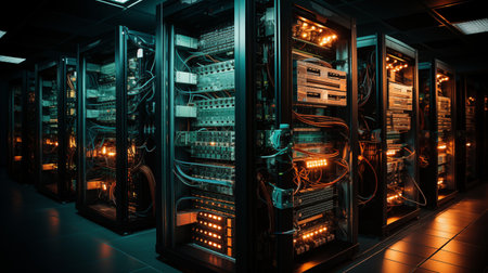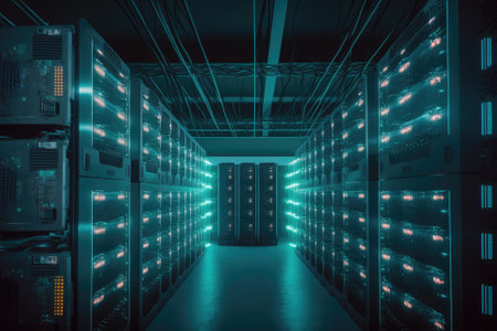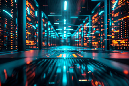Sleek server racks with glowing LEDs showcase advanced technology and organization in a modern data center.