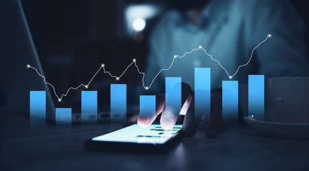 Businessman using smartphone and analysis diagram. Business graph background. financial graph
