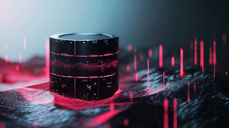 This striking image features an abstract representation of sound with a glowing audio speaker and vibrant soundwave patterns, showcasing modern technology.