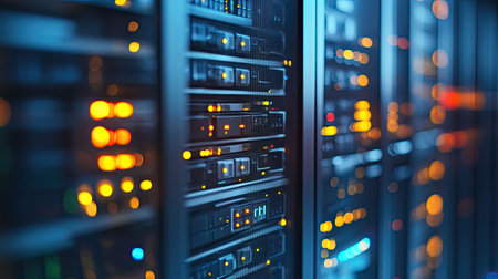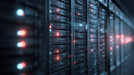 Sleek server racks with glowing LEDs showcase advanced technology and organization in a modern data center.