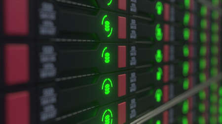Network servers in data room Domestic Room. 3D Render. Selective focus.