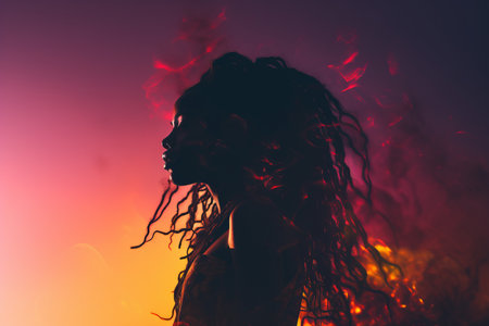 a woman with dreadlocks is silhouetted against a sunset