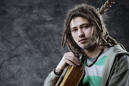 Fashion portrait of young african american man with dreadlocks.