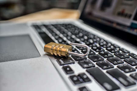 closed padlock on the laptop keyboard data protection concept internet censorship. High quality photo
