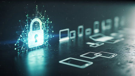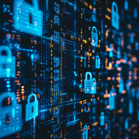 Abstract digital background with network security themes, highlighting the importance of cyber protection.