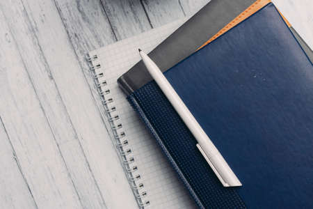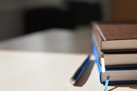 Notebooks and pen on table