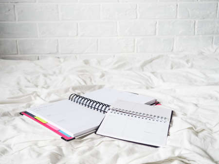 diary on a white cloth lies, the concept of remote work, freelance, work from home, comfort, blogger