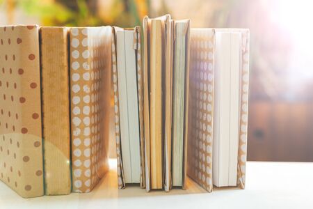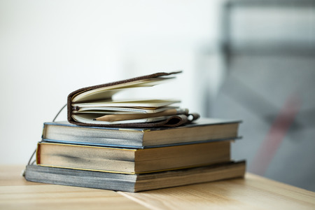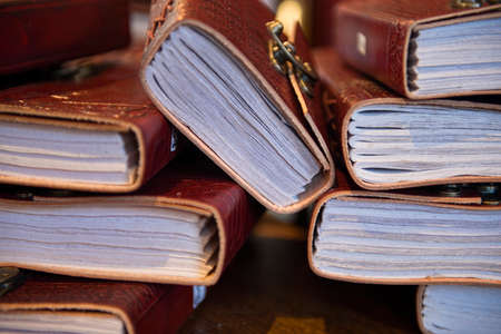 Close up of lot of notepads and diaries. Memories and learning concept.