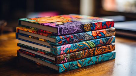 A stack of colorful books sitting on top of a table