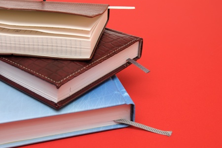 stack of books on red background
