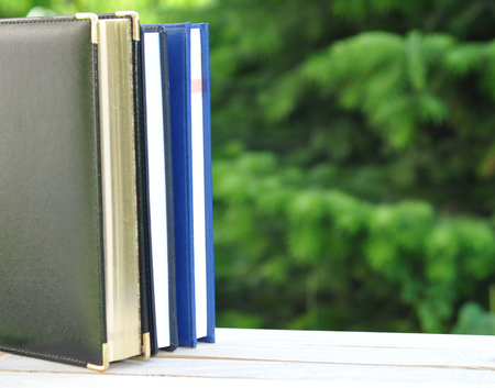 Notebook on the desktop cover, education, business, copy space