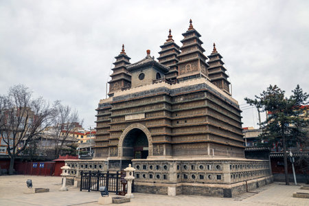 Scenery of Sakyamuni Pagoda in Fogong Temple, Yingxian County, Shanxi, China
