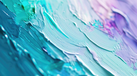 Close-up of layered textured paint in teal, lavender, and purple shades, showcasing an abstract and artistic gradient effect.
