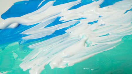 Sky blue acrylic paint. Decorative art abstract background. Smeared colored foam surface.