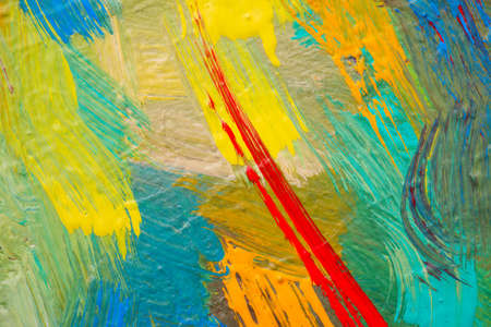 Closeup of a painting by oil and palette knife. Highly-textured, high quality details. Fragment of multicolored texture painting. Abstract art background. oil on canvas. Rough brushstrokes of paint.