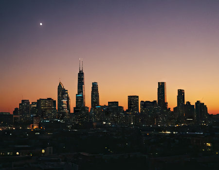 Cityscape of Chicago downtown at sunset, Illinois, United States.