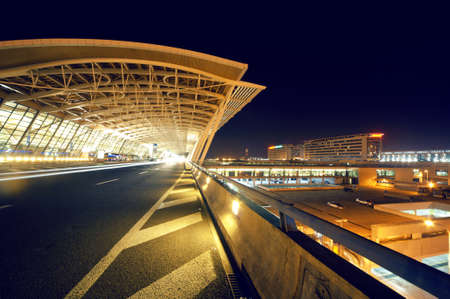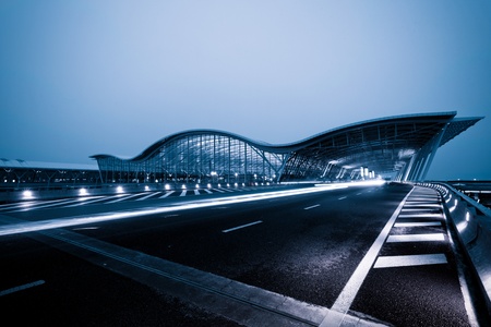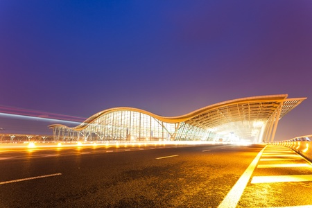 night scene of Shanghai's Pudong International Airport Terminal t2.