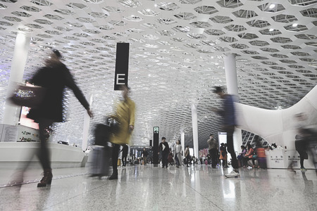passenger in the shanghai pudong airport.interior of the airport.