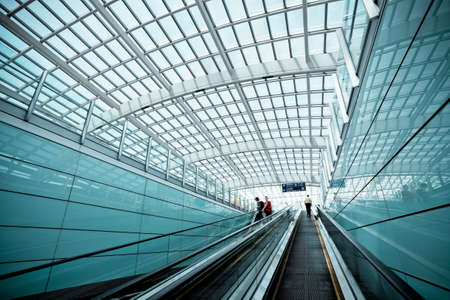 moving escalator in modern airport hall on beijing