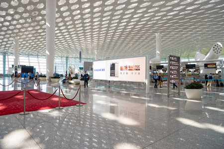 SHENZHEN, CHINA - CIRCA MAY, 2016: inside of Shenzhen Bao'an International Airport. It is located near Huangtian and Fuyong villages in Bao'an District, Shenzhen, Guangdong, China.