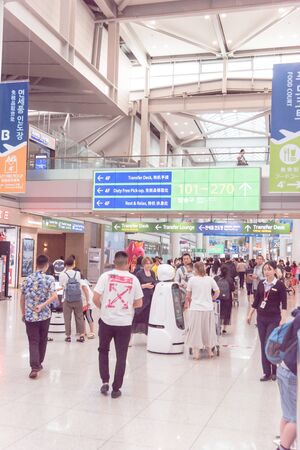 SOUTH KOREA-JULY 14, 2019: AIRSTAR Passenger Aiding Robot at Incheon International Airport. The second-generation robot that can help airline passengers navigate departures hall