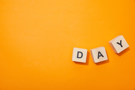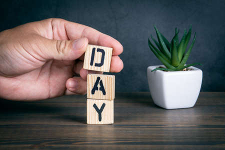 DAY. Text from wooden alphabet letters on the table