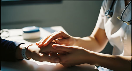 Doctor holding patient's hands offering comfort and support