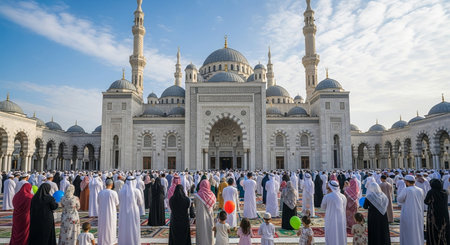 muslim family at the mosque during eid mubarak celebration