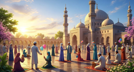 A symbolic of the unity and brotherhood among Muslims during Eid. Generative AI