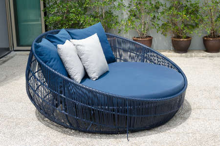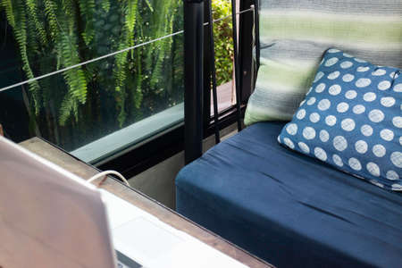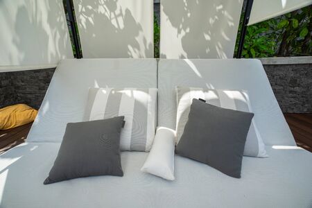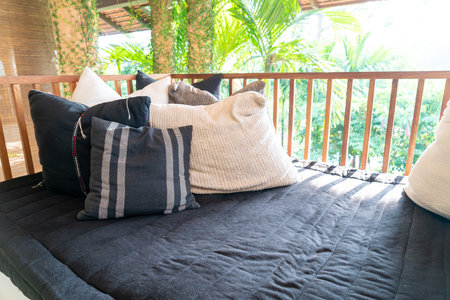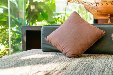 Pillow on sofa decoration nearly beach sea and ocean for leisure relax in holiday vacation