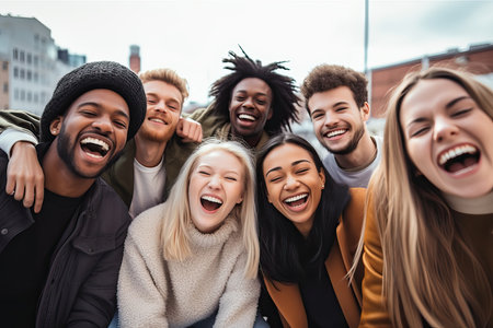 Diverse group of friends, smiling and laughing together, young and active teenagers, AI generative
