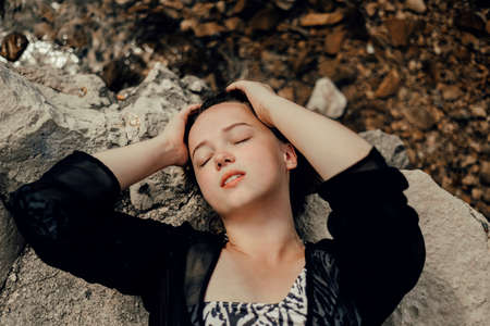 youn beautiful girl wake up outdoor