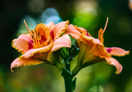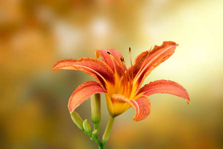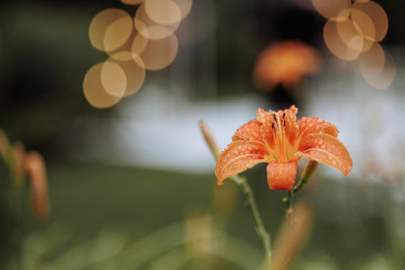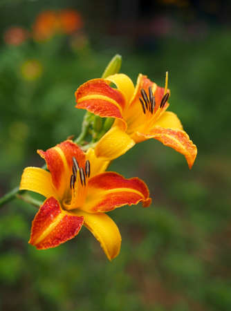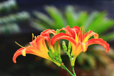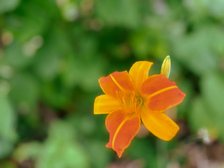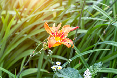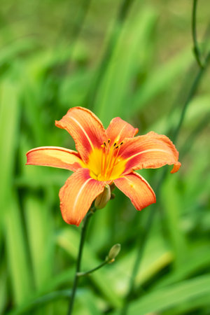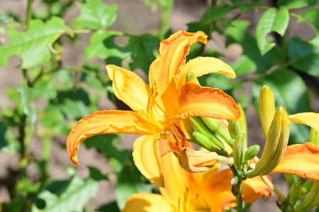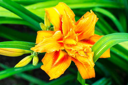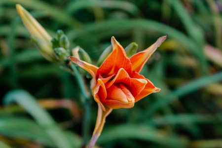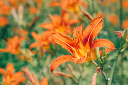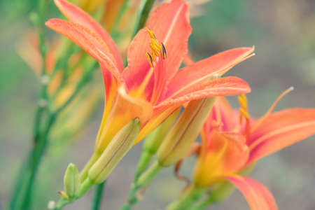 Orange daylily (Lilium) blooming in the garden