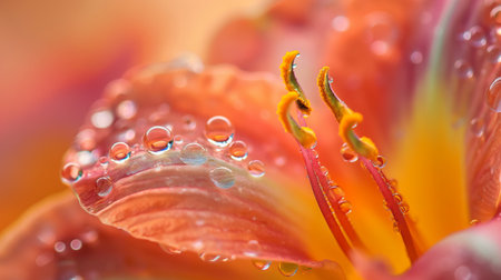 A stunning close-up of an orange lily flower, adorned with sparkling dew drops. This vibrant image captures the essence of nature, beauty, and freshness, ideal for various themes.