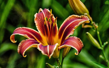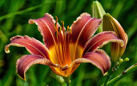 Bright flower daylily on a natural green background