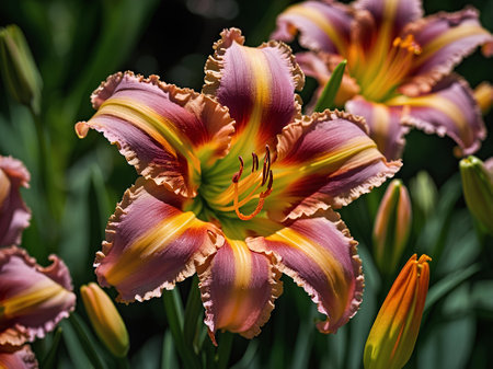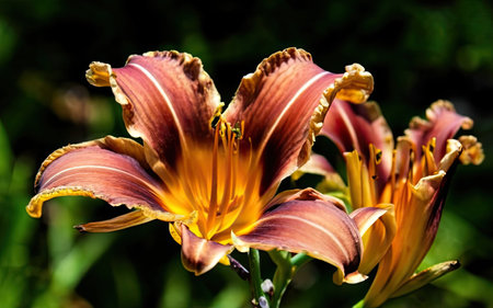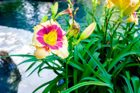 Close up of a beautiful blooming daylily in the garden