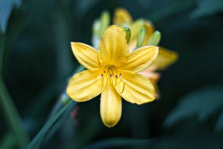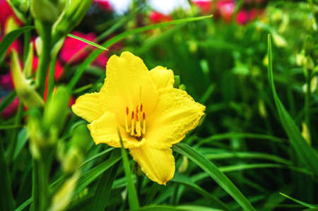 Yellow daylily in the garden, close-up of flower