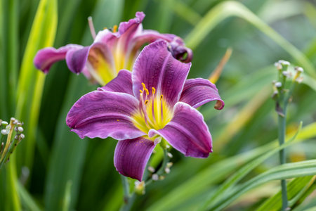 Purple and yellow daylily close-up