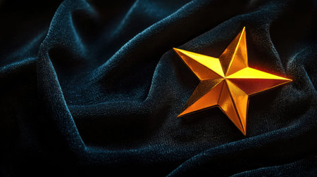 A golden star resting on luxurious dark fabric, symbolizing success, winner, and victory with elegance and sophistication