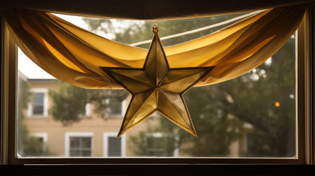 a close-up of glittery gold star ornament, created with generative ai
