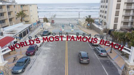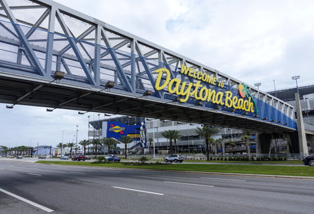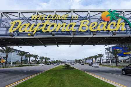 Welcome to Daytona Beach sign on International Speedway Blvd- DAYTONA, FLORIDA - APRIL 15, 2016