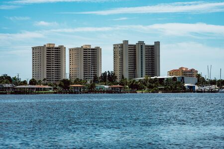 Daytona Beach, FL - August 14, 2018: View of large private homes along the bay