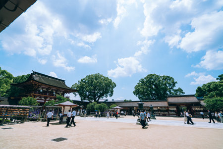 Fukuoka, Japan - June 12, 2017: Hakozakigu (Hakozaki Shrine) Japanese traditional architecture