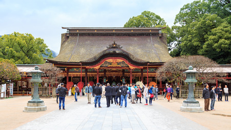 Fukuoka, Japan - December 10, 2015: Dazaifu shrine in Fukuoka, Japan on December 10, 2015. Built over Sugawara no Michizane's grave, one of main shrines dedicated to Tenjin, the deified form of Michizane.