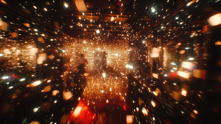 A mesmerizing display of colorful lights bursts outward creating a sense of motion and energy. This captivating scene evokes feelings of excitement and wonder resembling a cosmic explosion.
