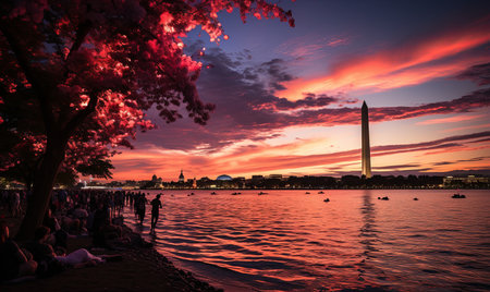 USA flag and people,Independence Day.National Day celebration,silhouette,generative ai