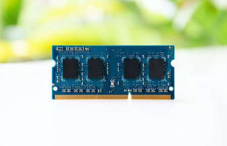 Random Access Memory or RAM for personal computer green color isolated on white background.