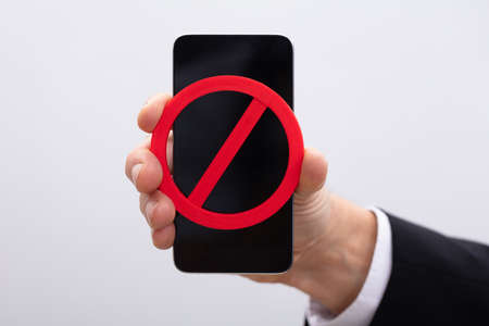 Business Person Showing Red No Sign On Mobile Phone
