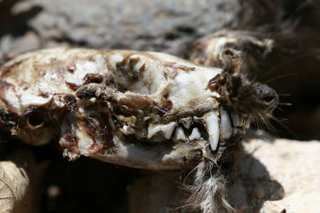 Close up of a skunks skull. Still some meat on it too!